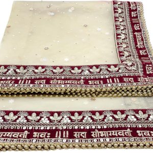 NETBOON Sada Saubhagyawati Bhava Bridal Wedding Dupatta with Sequins Lace | Dulhan Chunni 2.5m