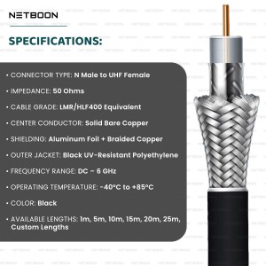 NETBOON HLF400 Coaxial Cable Assembly – N Male to UHF Male Connector | Low-Loss 50 Ohm RF Cable for Antennas & Communication Systems