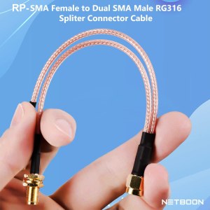 RP SMA Female to Dual SMA Male V Type RG 316 Coaxial Splitter Cable- 15cm